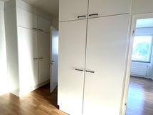 - Suihku, suihkuseinä, peilikaappi, allaskaappi, pesukoneliitäntä, lattialämmitys, kuivauspatteri.