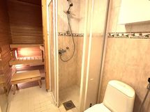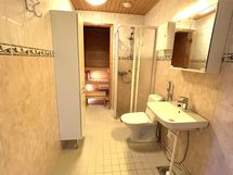 - Sauna, sähkökiuas, suihku, suihkukaappi, peilit, pesukoneliitäntä.
