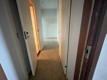 Asunnossa maalatut seinät, lattiassa muovimatto