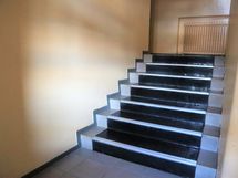 Ensimmäisen asuinkerroksen kulmakoti, jonne vain muutama porras. Seinänaapuri vain yhdellä sivulla.