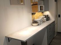 Suuri tiskipöytä, Puutasot, Astianpesukone, Liesi tai uuni erikseen, Jääkaappi, Pakastin