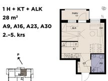 1h + k + parveke/terassi