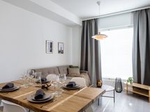 A stunning, high-quality fully furnished 34 m² one-bedroom apartment + balcony + small private yard, located in a peaceful inner courtyard of a housing company completed in 2021. Shorter rental periods are also possible.