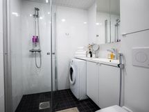 ✅ Vaalea kylpyhuone, jossa pesukone ja runsaasti säilytystilaa