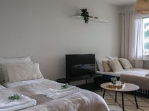 Vuokra 780 euroa / kk + vesi 35 € / henkilö / kk, autopaikka 15 € / kk. Sähkö ja internet-yhteys kuuluu vuokraan. Vuokrattavana 1.4.-31.10.2026.
