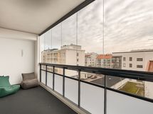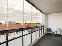 Lasitettu parveke, jossa voit nauttia aamukahvit säällä kuin säällä