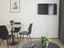 Forenom Apartments Rovaniemi Valtakatu 35 is located right in the city center next to Kemijoki river. All the services you will need, such as stores, cafés, restaurants and bars are just a short walk away. Whether you are in Rovaniemi on holiday or business, you can enjoy the excellent location in the heart of the city. You have convenient access to the most important sights in the city, as public transportation is easily accessible and the train and bus stations are only minutes away. Lappish theme apartments are fashionable and comfortable. Every apartment has private toilet with shower and a hair dryer, a large flat-screen TV, own kitchen with refrigerator, microwave oven, coffee maker, electric kettle and tableware. In addition, convenient key codes for access make it quick and easy for you to come and go; your room number and the keycode will be sent to you via SMS and email on the day of your arrival.