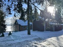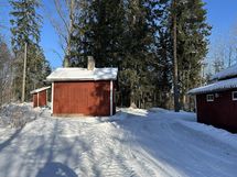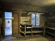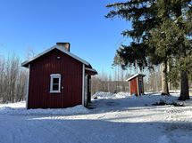Piharakennus, jossa verstas ja liiteri. Saunarakennus. Puucee.