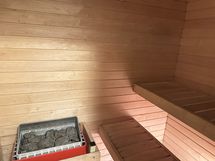 Varusteet: Sähkökiuas. Seinämateriaali: Paneeliseinä. Lattiamateriaali: Laattalattia