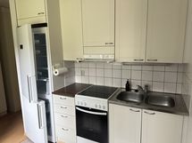 Varusteet: Jääkaappipakastin. Työtaso: Laminaattitaso, Metalli/rosteritaso. Liesi: Keraaminen liesi, Liesituuletin hormilla