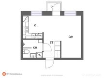 KE,OH: vinyylilankku/maali. ET: vinyylilankku/maali. KH: laatta/laatta.