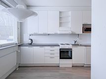 - Liesi: sähköliesi. Työtasot: metalli. Kylmäsäilytys: jääkaappi/pakastin. Varustus: mikroaaltouuni, astianpesukone. Liesi uusittu v. 2017