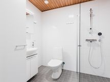 - Pesutilojen kuvaus: (lattialämmitys asunnon sähkön mittauksessa). Varustus: suihkuseinä, pesukoneliitäntä, lattialämmitys, wc-istuin, suihku, peilikaappi.