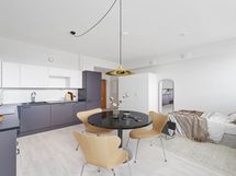 Erinomaiset ja nykyaikaiset huoneistot, tyylikkäät keittiökalusteet ja kodinkoneet (erillisuuni, keraaminenliesi, jää/pakastin, astianpesukone), avoin yhteys oleskelutilaan. Tilava, vaaleasävyinen, tyylikäs, kylpyhuone/wc. Kiva alkovi.