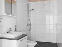 Kylpyhuoneessa on liitännät pyykinpesukoneelle.