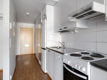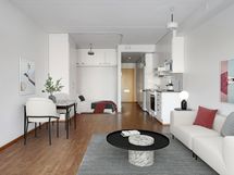 Tässä kodissa arki sujuu mutkattomasti. Moderni, vaaleasävyinen keittiö on varusteltu astianpesukoneella, liedellä sekä jääkaappipakastimella, ja tarjoaa toimivat puitteet niin kokkailuun kuin arjen helppouteen. Erillinen alkovi tuo asuntoon selkeyttä ja mahdollistaa oman rauhallisen nukkumatilan. Tilava, laatoitettu kylpyhuone on käytännöllinen – pesutornille on varaus ja sähköinen mukavuuslattialämmitys lisää arjen mukavuutta. Ranskalainen parveke tuo asuntoon valoa ja avaruutta.