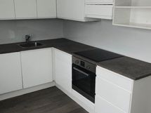 Keittiön varusteet: Jääkaappipakastin, erillisuuni, liesi, liesituuletin ja astianpesukone. Liesi: Keraaminen liesi. Työtason materiaali: Laminaatti.