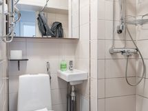 - Suihku, Peilikaappi, Laattalattia, Laattaseinä, Pesukone, Halogeenivalot, Lattialämmitys