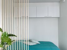 The studio comes with all that is needed for a homelike stay from silverware and kitchen utensils to a flatscreen TV and an all-in-one washer dryer. The modern kitchen features a microwave, an induction range and oven, a refrigerator and a dishwasher, plus a kettle, a coffee maker and a toaster. The alcove bedroom has a comfortable 140cm wide bed for two persons. There is a plenty of storage space in the kitchen, alcove bedroom and the entrance hallway.