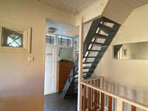 Paritalo, jossa yhteensä kolme asuntoa. Päättyvän tien päässä, pihaan mahtuu kaksi autoa. Oma piha ja terassi sekä omenapuita. Raput sisällä ovat jyrkähköt.