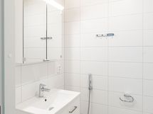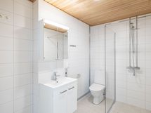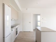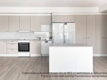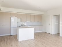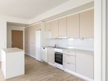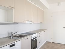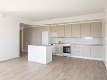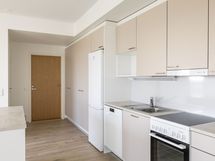 Tässä toisen kerroksen asunnossa on moderni keittiö, jonka varusteluun kuuluu keraaminen liesi ja astianpesukone. Lattiamateriaalina on tyylikäs laminaatti. Kylpyhuone on laatoitettu.