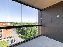 Parveke suuntautuu luoteeseen. Ikkunat ovat koilliseen, kaakkoon sekä luoteeseen. Ikkunoissa ja ovissa on sälekaihtimet. Asunnossa on erillinen wc sekä vaatehuone.