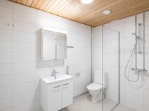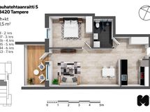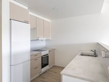Tässä viidennen kerroksen asunnossa on moderni keittiö, jonka varusteluun kuuluu keraaminen liesi ja astianpesukone. Lattiamateriaalina on tyylikäs laminaatti. Kylpyhuone on laatoitettu.