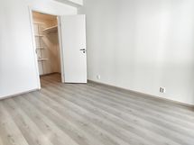 Lasitetulle parvekkeelle käynti makuuhuoneesta. Säilytystilana makuuhuoneessa vaatehuone