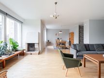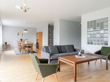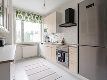 This furnished three-bedroom apartment is located in Kaleva, Tampere, along the tram route. The apartment has three bedrooms, living room, dining room, kitchen, bathroom and separate toilet. In addition, the apartment has its own atmospheric balcony. The Tammelan Stadion business center near the apartment has many restaurants, large grocery stores, and good public transport connections, such as trams and buses, are close by.