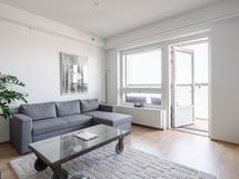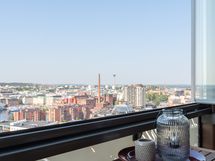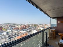 This 53.5m2 two-room apartment with a sauna is located on the 15th floor of the Wallesmanni tower building. The apartment includes a separate bedroom, an open kitchen, a spacious living room, a bathroom with its own sauna and a large glazed balcony with sunset views over the center of Tampere! There are many restaurants, grocery stores near the apartment, and there are good public transport links nearby, such as trams and buses.