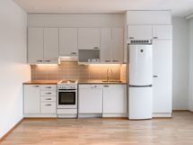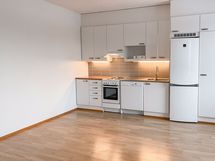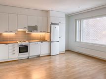 Kauniin vaaleassa avokeittiössä on vakiovarusteena astianpesukone, joka helpottaa arkea! Keittiössä myös pieni syvennys luoden hyvän paikan ruokapöydälle. Laatoitetussa kylpyhuoneessa on sauna ja liitäntä pesukoneelle. Asunnossa on laminaattilattiat ja vaalealla maalatut seinäpinnat.