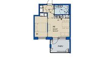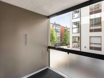 Tämä erittäin toimivapohjainen ja kaunis, kompakti kaksio on moderni, ja sen neliöt on käytetty todella tehokkaasti - hukkaneliöitä ei ole. Makuutila on erotettu seinällä olohuoneesta ja asunnon iso parveke katselee etelän suuntaan.