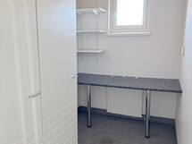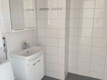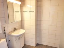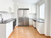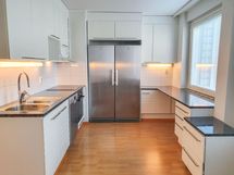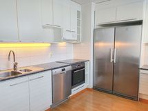 Kodissa on laminaattilattia ja seinät ovat maalatut. Keittiössä on rosteriset kodinkoneet. Varustukseen kuuluu erilliset jääkaappi ja pakastin, keraaminen liesi ja astianpesukone, joka tuo ripauksen arjen luksusta. Kylpyhuone on laatoitettu tyylikkäästi valkoisella ja harmaalla sävyllä. Pyykinpesukoneelle on tila ja liitännät kodinhoitohuoneessa.