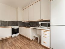Liesi: sähköliesi. Kylmäsäilytys: jääkaappi/pakastin. Varustus: varattu paikka astianpesukoneelle.