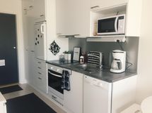 - Laminaattitasot, jää-pakastinkaappi, astianpesukone, keraaminen liesi, liesituuletin.