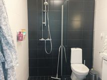 - Suihku, suihkuseinä, pesukonevalmius, allaskaappi, laattalattia, laattaseinä, lattialämmitys.