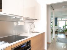 - Liesi: induktio, erillisuuni. Työtasot: puu. Kylmäsäilytys: jääkaappi, pakastin. Varustus: mikroaaltouuni, astianpesukone.