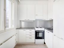 Tilava yksiö Tampere, Hervanta Tässä huoneistossa on uudistettu keittiöpinnat 4/2022 ja huoneiston lattiat ovat laminaattia. Tilava yksiö jossa on erittäin iso lasitettu parveke. Tämän kolmi-kerroksinen hissillinen talo sijaitsee kävelyreitin varrella.
