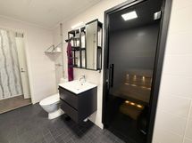Varustus: pesukoneliitäntä, wc-istuin, suihku.