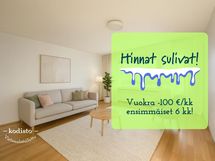 Valittujen asuntojen vuokrahintoja on laskettu! Etu on jo huomioitu ilmoituksessa näkyvässä vuokrahinnassa, ja koskee ainoastaan valittuja asuntoja ja kohteita. Etu on voimassa ainoastaan uusiin vuokrasopimuksiin, ja edellyttää vuokrasopimuksen aloitusta viimeistään huhtikuun aikana.