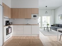- Paljon työskentelytilaa, Suuri tiskipöytä, Astianpesukone, Induktioliesi, Jää-pakastinkaappi