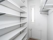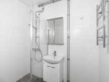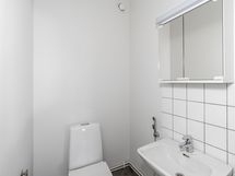 Kylpyhuoneessa on liitännät pyykinpesukoneelle ja erillinen pikku-wc sujuvoittaa arkea.