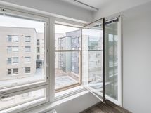 Kodin kookkaat ikkunat ja ranskalainen parveke tekevät siitä ihanan valoisan. Asunnossa on valmista säilytystilaa niin asuinhuoneen kuin eteisen puolella. Lisäksi kodissa on valmiiksi asennetut sälekaihtimet sekä verhokiskot. Lattiamateriaalina on kestävä tammilaminaatti ja seinät ovat valkoiset.