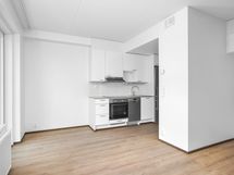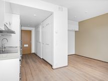 Avara lasitettu parveke aukeaa luoteeseen sisäpihalle päin. Yhtenäisen ilmeen koko kotiin tuovat kaunis puunsävyinen laminaattilattia sekä vaaleat seinäpinnat. Kaikissa ikkunoissa on sälekaihtimet ja eteisessä on kattoon upotettu led-valaisin. Säilytystilat ja keittiö on keskitetty omaksi kokonaisuudeksi, jättäen tilaa juuri sinun sisustusratkaisuillesi. Lisäsäilytystilaa löytyy alkovista löytyvistä yläkaapeista.