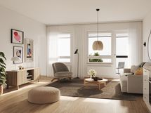 - Valoisa ja avara asunto isoilla ikkunoilla
