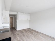 Kodin asuinhuoneesta pohjoiseen avautuvat suuret ikkunat ja ranskalainen parveke tekevät siitä tilavan tuntuisen. Asunnossa on hyvin valmista säilytystilaa niin asuinhuoneen kuin eteisen puolella. Lisäksi kodissa on valmiiksi asennetut sälekaihtimet sekä verhokiskot. Lattiamateriaalina on kestävä tammilaminaatti ja seinät ovat valkoiset.