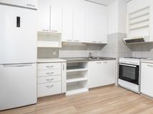Keittiössä on tilaa ruokapöydälle, ja astianpesukoneellesi on tilavaraus. Keittiön varustukseen kuuluu myös nelilevyinen liesi ja jää-pakastinkaappi.