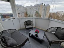 Rent: 830 euros per month (includes basic internet, furnitures- premium quality bed from SOTKA 160*200, premium quality sofa bed from SOTKA, recliner sofa, 50 inches 4K tv with stand, dining table + chairs for 4 (IKEA), Bookshelf (IKEA), balcony tea table, balcony sofa, and balcony chairs (SOTKA))