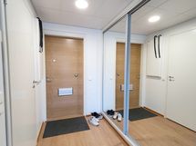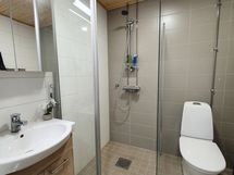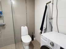 Varustus: suihkuseinä, pesukoneliitäntä, lattialämmitys, wc-istuin, suihku, peilikaappi.