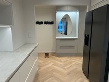- Täysin remontoitu tyylikäs valkoinen keittiö, ,jossa jääkaappi/ pakastin, jossa kylmävesi ja jääpalakone, induktioliesi, liesituuletin, integroitu astianpesukone.